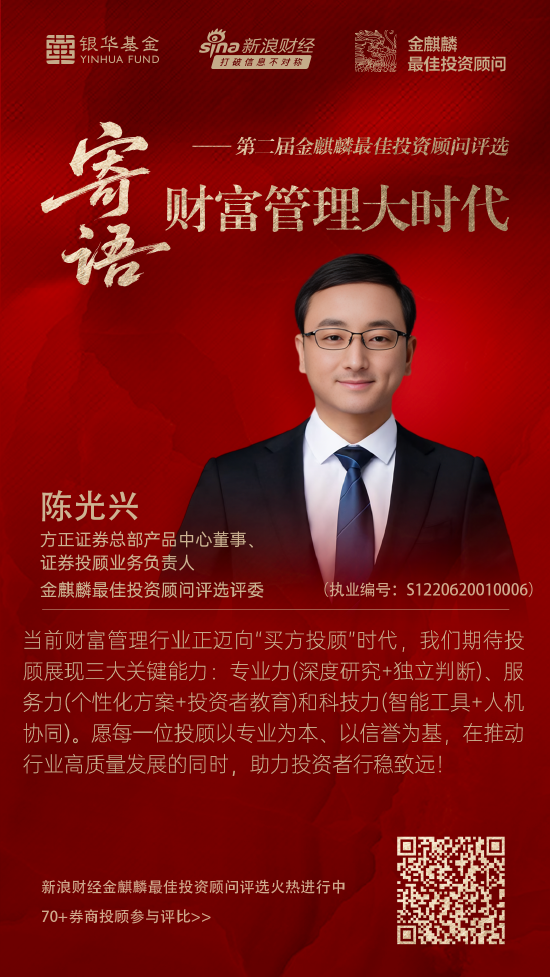 基于此,新浪财经与银华基金共同打造“金麒麟最佳投资顾问评选”品牌活动,寻找优秀投资顾问,赋能投顾IP建设,共建展业平台!金麒麟最佳投资顾问评选活动旨在为投资顾问提供一个展示形象、扩围服务、提升能力的舞台,为优秀投资顾问与大众投资人搭建沟通对话的桥梁,助推中国财富管理行业健康发展。