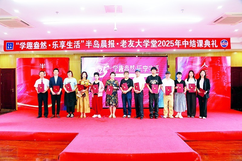 6月30日下午,“学趣盎然·乐享生活”半岛晨报·老友大学堂2025年中结课典礼在大连新百佳妇儿医院温馨上演。数百名学员身着学士服,在掌声与荣光中接过结课证书,十余个班级轮番献上精彩演出,集中展示了一学期丰硕的学习成果,共同诠释了“学趣盎然·乐享生活”的终身学习魅力。活动由大连电视台气象主播、半岛老友大学堂朗诵班特邀讲师贺同睿主持,半岛晨报社编委、老年与健康事业中心总经理于东瀛,半岛晨报老年与健康事业中心主编来庆新及半岛老友大学堂金牌讲师团出席了本次活动。